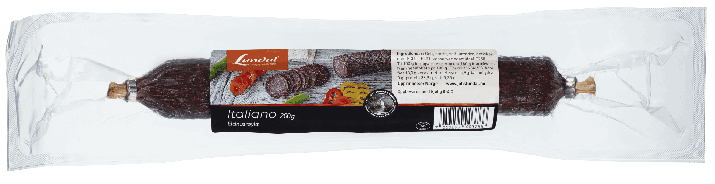 Smakfull eldhusrøykt spekepølsa med deilig Italiensk krydder. Perfekt til tapas, kvelds, frukost, fest og kvardag.